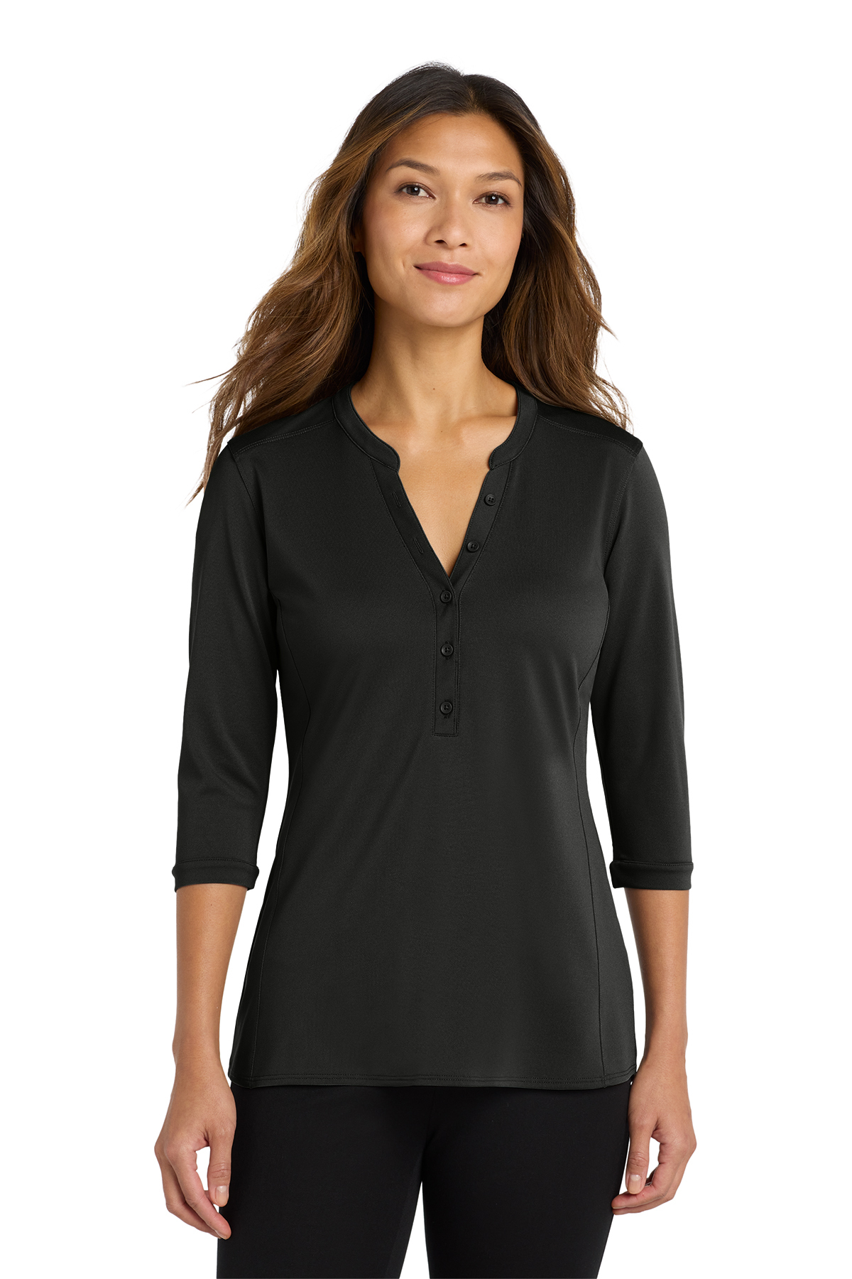 Women's UV Choice Pique Henley: 4XL(+$3) Black Aero Compression