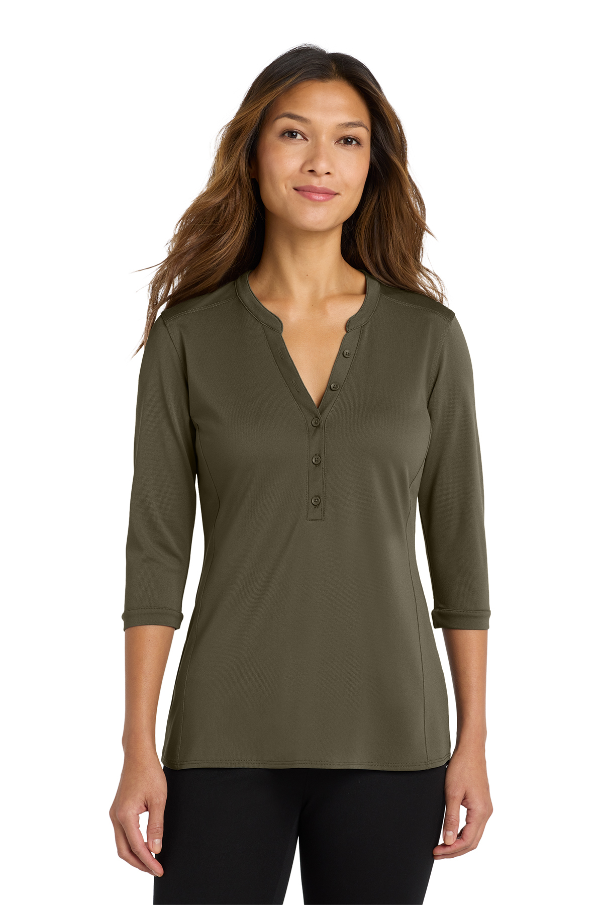 Women's UV Choice Pique Henley: Medium Deep Olive Case IZ