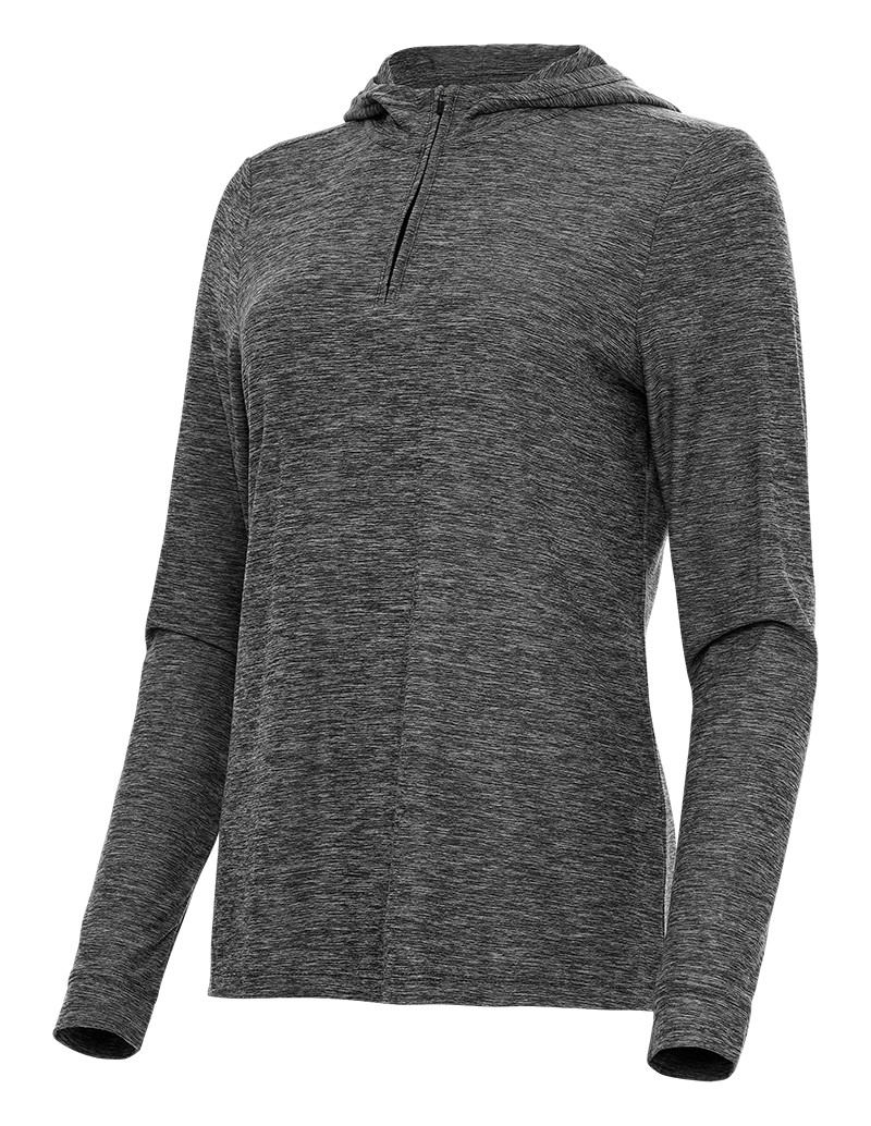 Antigua Women's Daybreak 1/4 Zip Hood: Medium Black Heather Aero Compression
