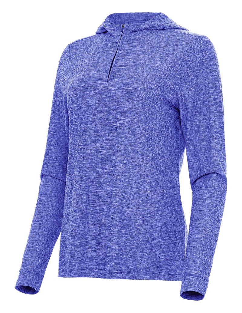 Antigua Women's Daybreak 1/4 Zip Hood: Medium Dark Royal Heather Compression Mechanical